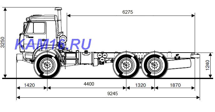 Особенности комплектации: колесная формула 6х6, блокировки мкб, моб, кабина трех мастная со спальным местом, ДВС Камаз-740.31-260 л.с. (тнвд-язда), кпп-154 с делителем, меж осевое растояние 4 400 мм, монтажная длина рамы 6 200 мм, предпусковой подогреватель двигателя.